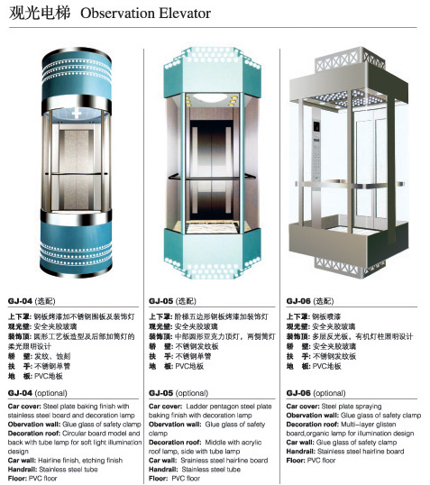 原裝32位微機控制系統使其可靠舒適的內在品質與工藝精致的視覺美感和諧統一;多款標準產品與依據不同客戶偏好度身定制的個性化款式,可以滿足客戶的多樣化需求;韋伯觀光電梯是精美藝術品,賦予建筑物個性與活力,使其平添一道流動的靚麗風景線??捎糜谏虉?、賓館、辦公樓、住宅樓和公共建筑等高檔場所。