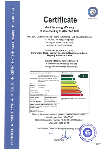 喜報(bào)|韋伯電梯再獲南德TüV能效A級(jí)認(rèn)證