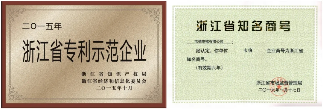 從品牌成立之初,韋伯電梯便引進德國先進的控制技術(shù),編碼技術(shù),并嚴(yán)格按照ISO9001質(zhì)量管理體系標(biāo)準(zhǔn)執(zhí)行,確保韋伯電梯每個產(chǎn)品系列平穩(wěn)安全的運行,力求對每一件產(chǎn)品負責(zé),以保證每一臺出廠的韋伯電梯都是精品?! ⊥瑫r,韋伯電梯具備優(yōu)秀的自主設(shè)計、研發(fā)和檢測能力,擁有63項各類專利技術(shù),每年數(shù)千萬資金投入技術(shù)和設(shè)備研發(fā),擁有中心實驗室,位居電梯行業(yè)的前列,多項技術(shù)填補了國內(nèi)空白并達到領(lǐng)先水平,為電梯行業(yè)的發(fā)展提供了強有力的技術(shù)支持?! ≡谑嗄甑陌l(fā)展歷程中,韋伯電梯以高品質(zhì)獲得了市場與消費者的認可,曾先后獲得 “國家高新技術(shù)企業(yè)”、 “省級高新技術(shù)企業(yè)研究開發(fā)中心”、 “省級專利示范企業(yè)”、“浙江省知名商號”等多項榮譽稱號,品牌口碑廣獲好評。